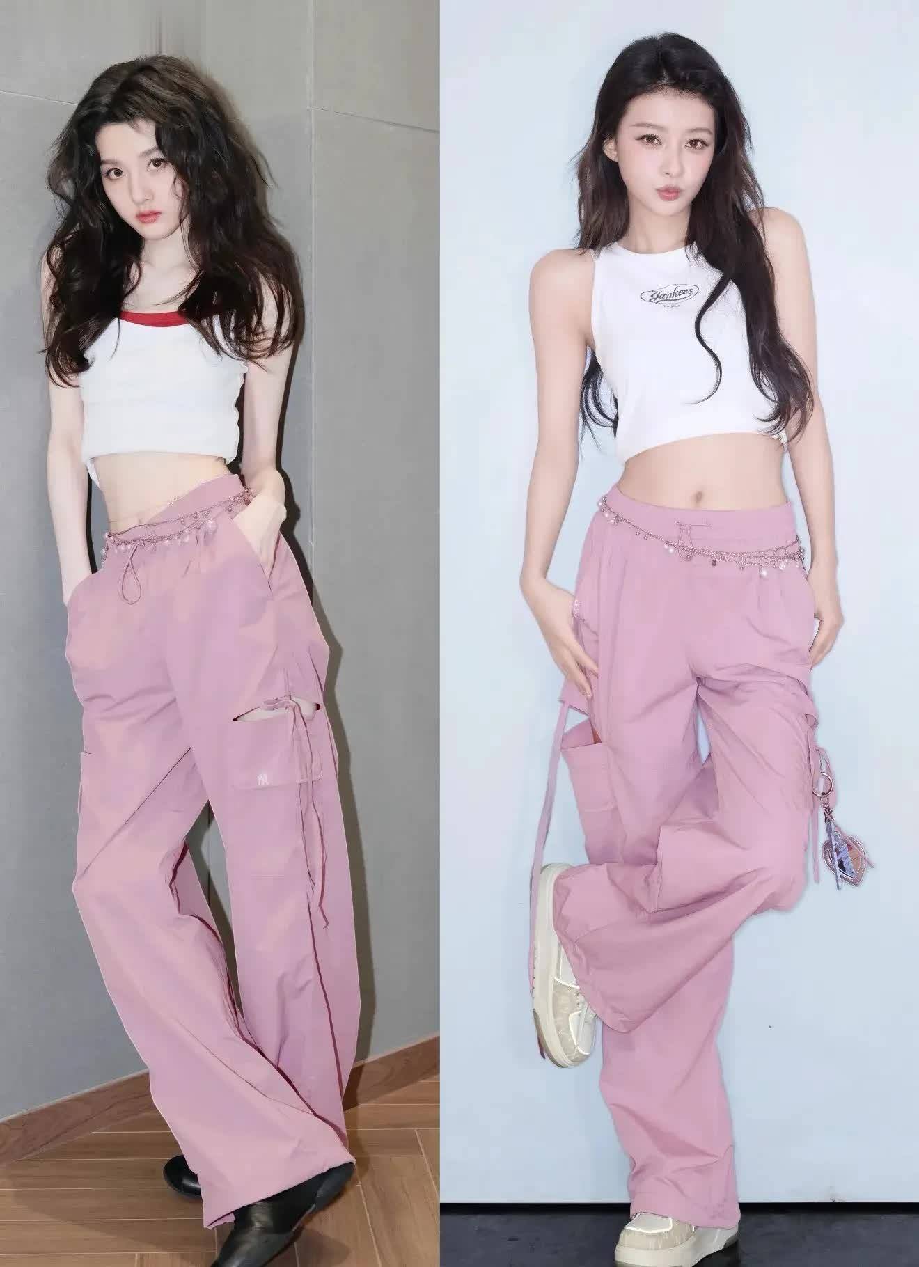 2026年,樱花粉成为流行色。近期,孙怡与宋祖儿这两位实力小花,身着印花粉工装裤搭配短背心,展现出截然不同的时尚风格,完美诠释了同一件单品的多样穿搭可能。